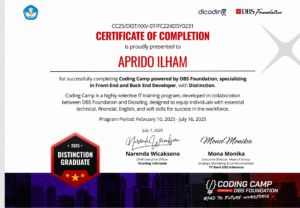 | Aprido Ilham 1122093000004 | Coding Camp DBS Foundation | 2025 | Terbaik |